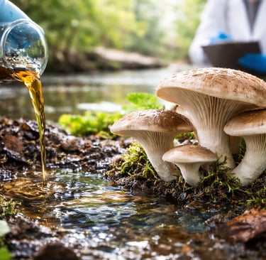 Como fungos ajudam a descontaminar solos e águas poluídas por meio da micorremediação.