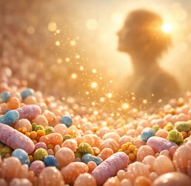 Dentro desse sistema, o microbioma intestinal funciona como um modulador. Ele pode influenciar a integridade da barreira intestinal, a forma como o sistema imune reage e a produção de substâncias que atuam como mensageiros químicos. A ciência investiga como esses caminhos se conectam a sintomas emocionais e cognitivos, sem reduzir o fenômeno a uma causa única. (CLAPP, 2017)