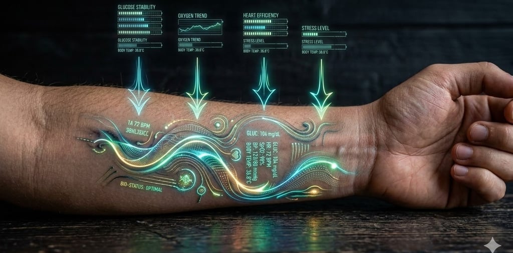 A pele humana sempre contou histórias. Cicatrizes contam acidentes, rugas contam idade, e tatuagens convencionais contam escolhas estéticas ou afetivas. Mas e se a pele pudesse também contar, em tempo real, o que está acontecendo dentro do corpo — os níveis de glicose, a hidratação, a frequência cardíaca, a atividade muscular?